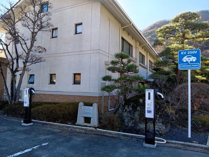 ヴィラせせらぎ駐車場に200V充電スタンドを設置しました。